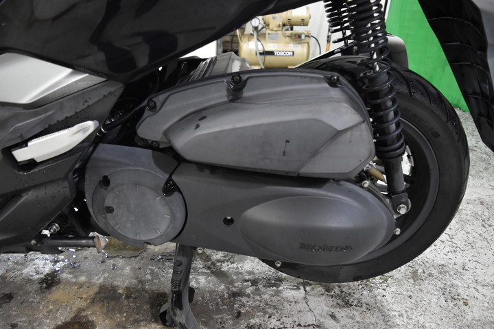 左側エンジンカバー/エキゾーストマフラーシールドに傷あり