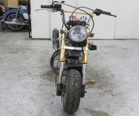 バッテリー放電前後フェンダーに傷(カスタムリアフェンダー/カスタムペイント)カスタムシート/カスタムマフラー(傷あり)/カスタムリアショックアブソーバーカスタムエンジン(サイドカバーに傷/キックスタートが欠損/スプロケットカバーが欠損)カスタムオイルクーラー/カスタムキャブレターとエアフィルターカスタムハンドルバー/ハンドグリップ/フロントショックアブソーバー(塗装が剥がれている)カスタムウィンカー/カスタムスピードメーターと回転計カスタムステアリングダンパー/燃料タンクに小さな傷あり"
