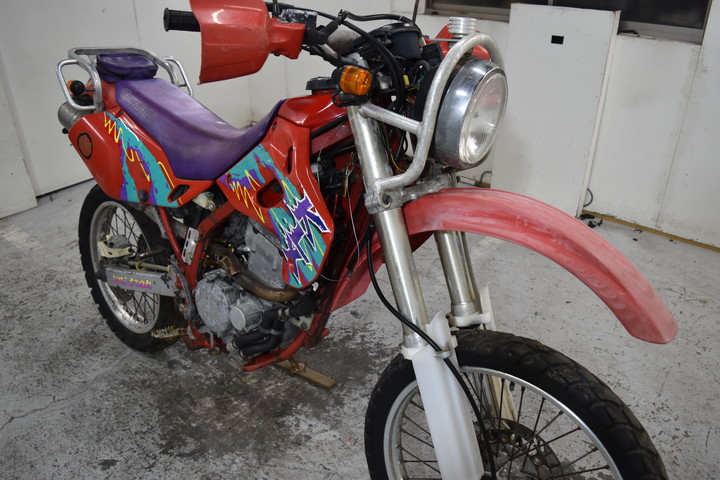 バッテリーが切れている前後のマッドガードが傷ついている(塗装が色あせている)サイドパネルが傷ついている / フレームの塗装が擦り減っている前後のブレーキが効かない / エンジンサイドカバーの塗装が擦り減っている前のショックアブソーバーが腐食している / 燃料タンクに錆がある燃料タンクのサイドパネル / ヘッドライトパネル / ハンドルバープロテクターが傷ついているカスタムハンドルバー / ホイールリムが傷ついているカスタムリアショックアブソーバーアセンブリ"