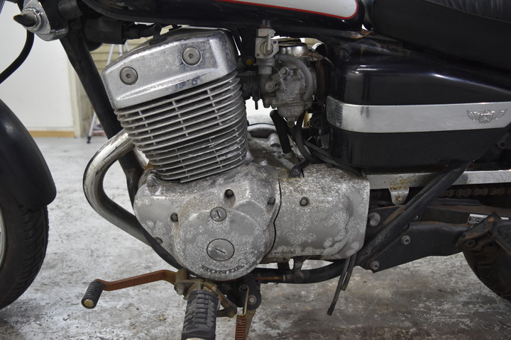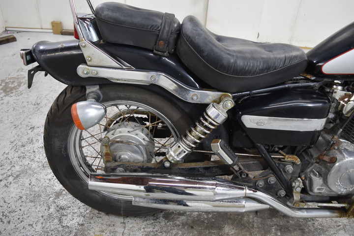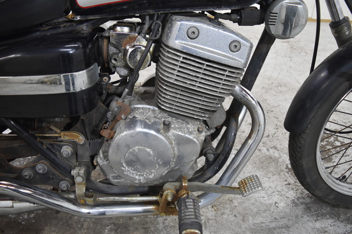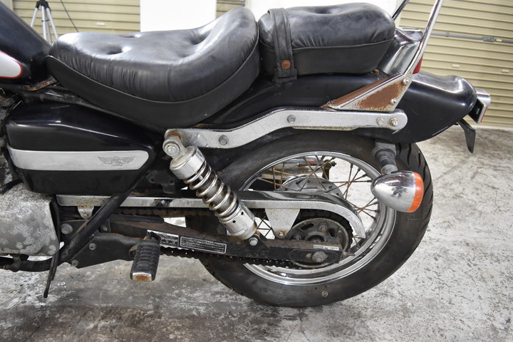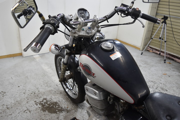 バッテリーが空ですフロントとリアフェンダー / サイドパネルに傷がありますエンジンサイドカバー / 排気マフラーの塗装が摩耗していますフレームの塗装が摩耗している / 燃料タンクに傷があります(キャップがキーで開きません)フロントブレーキが動作しません / フロントショックアブソーバーとホイールリムに傷がありますヘッドライト周辺 / スピードメーター周辺に傷がありますカスタムリアバックレスト"