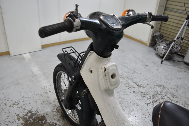 バッテリーが放電状態です。リアフェンダーパネル/サイドパネルに傷(カスタム塗装)。シートにひび割れ/リアキャリーラックに傷(カスタム塗装)。エキゾーストマフラー/エンジンサイドカバーに傷。カスタムチェーンガード/ホイールリムに傷。レッグガードプラスチック破損/フロントパネルおよびフロントフェンダーに傷(カスタム塗装)。ヘッドライトパネルおよびダッシュボードパネルに傷(カスタム塗装)。フロントブレーキが作動せず/チョークケーブルが破損。"