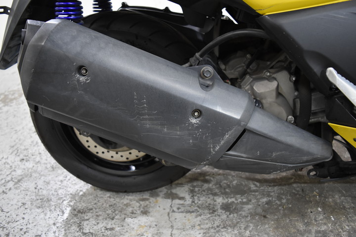 リアサイドフェンダーパネル / リアグラブバーにキズあり左側エンジンカバー / エキゾーストマフラーシールドにキズありカスタムリアショックアブソーバー / メインバイクスタンド取り外し済みボトムサイドパネル / フロントフェンダーにキズありフロントサイドパネル / フロントパネルにキズありフットレストパネル / グローブボックスパネル / ダッシュボードパネルにキズありサイドミラーにキズあり"